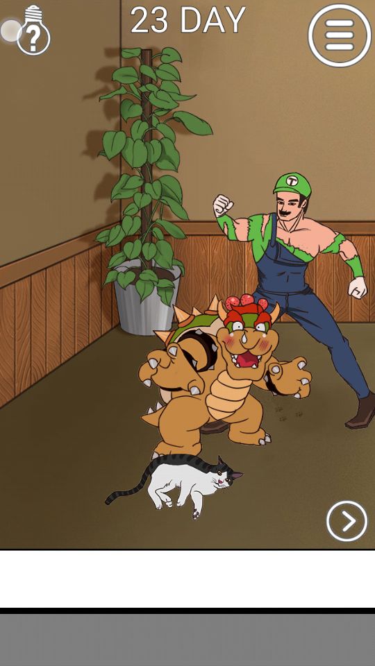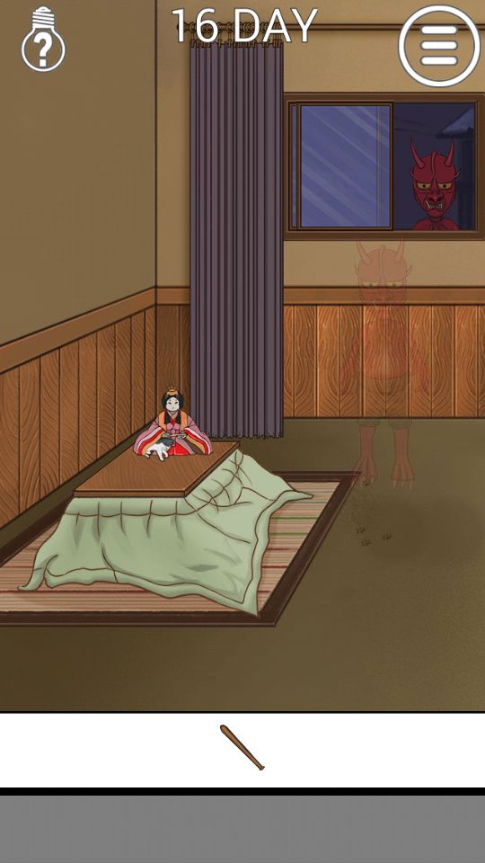 第十六关:盆栽后有棍子,去左边房间打开窗户一闷棍敲倒赤鬼,从他身上摸出万宝锤,点猫一下,让猫跑出来后把把猫捶大…(明明小一点的很可爱嘛)