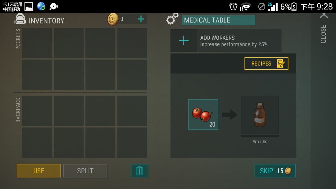 楼主 :用酒精加绷带可以合成医疗包。以后大有用处 。