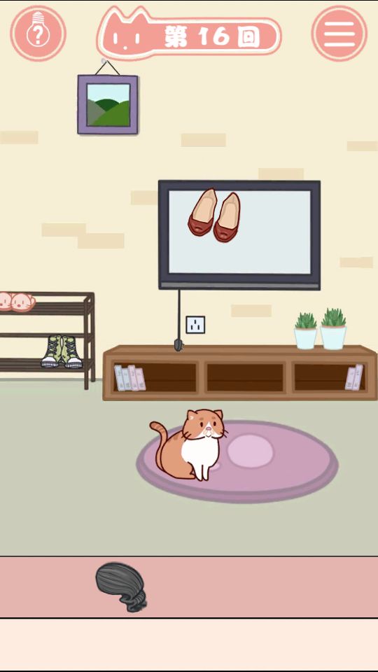 16.从鞋架上找到高跟鞋和假发,用高跟鞋砸穿电视,拔掉电源,对电视使用假发