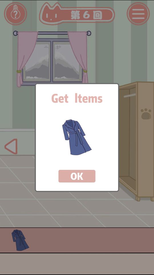 6.去右边找大衣給正在织毛衣的女主人穿上,挂在身上