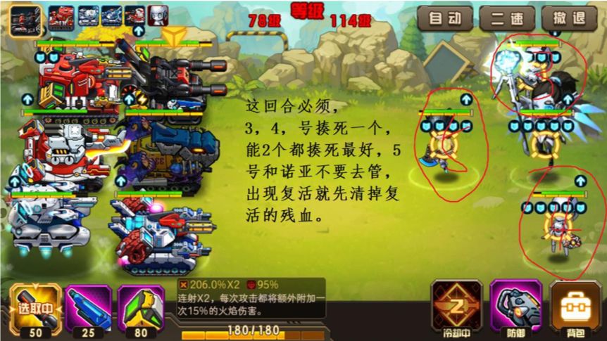 6,5 号小兵会链接诺亚生命,3,4 小兵会加攻加防加盾,重甲记得嘲讽。打完第二回合见下图。