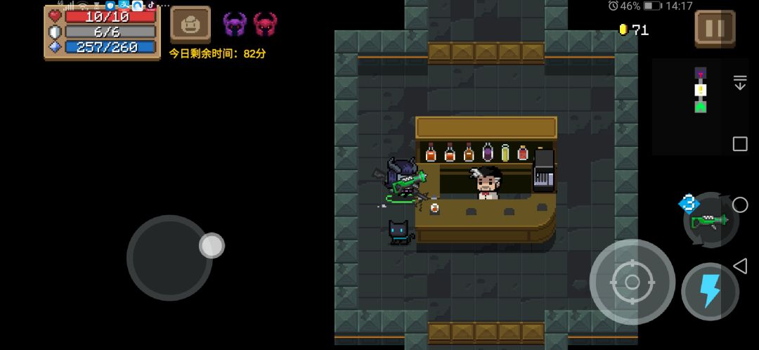 开启屌炸天+试炼之地进入地牢右手最好拿一把近战武器,可以挡子弹。也可以到花园拿一把铁铲,推荐用双节棍或肉 。