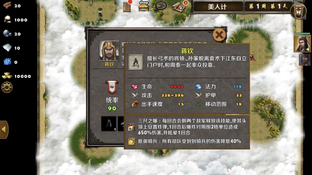 甘宁:甘宁主要是会回避一次普攻,用一个其他单位先破回避,再用两队射手消灭他。(建议第一回合灭了甘宁,不然第二回合加一次回避,要多打一次)(对我来说,两队70神射手就能射死他)