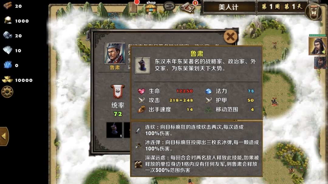 鲁肃:鲁肃每回合开始随机冰冻一个单位2回合,(好像大概率都每回合都是冰冻同一个目标😓),为了避免麻烦,对面无远程部队的情况下,优先射死鲁肃为好。再一个,打鲁肃注意有人跑出去身边没有队友的话,鲁肃会放全屏攻击。