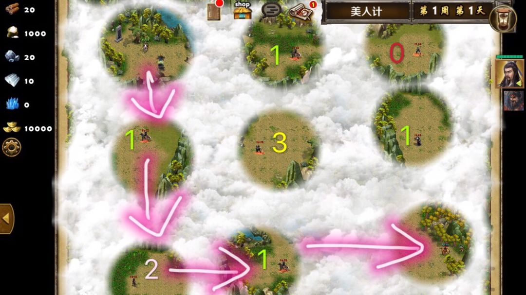 四、路线选择,以及部分武将介绍(分优先级123,0表示不打)(放一个图片做示例)