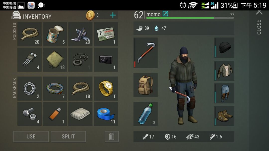 附: 山尼马德丹这次带了2把撬棍, 一把3分之一1不到的毁灭者(圆锯),一组胡萝卜,4个绷带。
