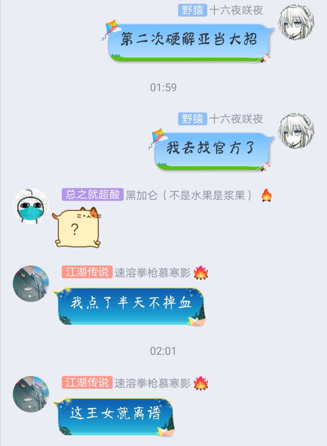 恶意利用延迟挡刀的方法正在被好几个(至少好几个)人利用!!证据举例:该王女在攻击其他玩家时情况正常,但①在残血时拖延几秒挡刀②直接硬抗亚当大招,严重影响游戏体验!