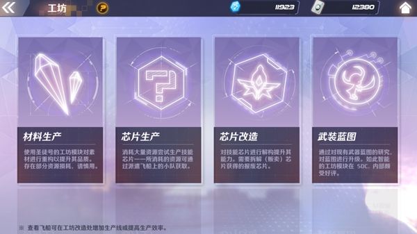 进入生产环节后,玩家可以退出至别的界面进行其他操作,生产一样可以在后台进行。由于部分材料(如芯片)的消耗量较大,需要花费较长时间生产,玩家还可以在部分飞船界面中,开辟新的工坊的生产线,最多可增至三条生产线,同时生产不同的材料。