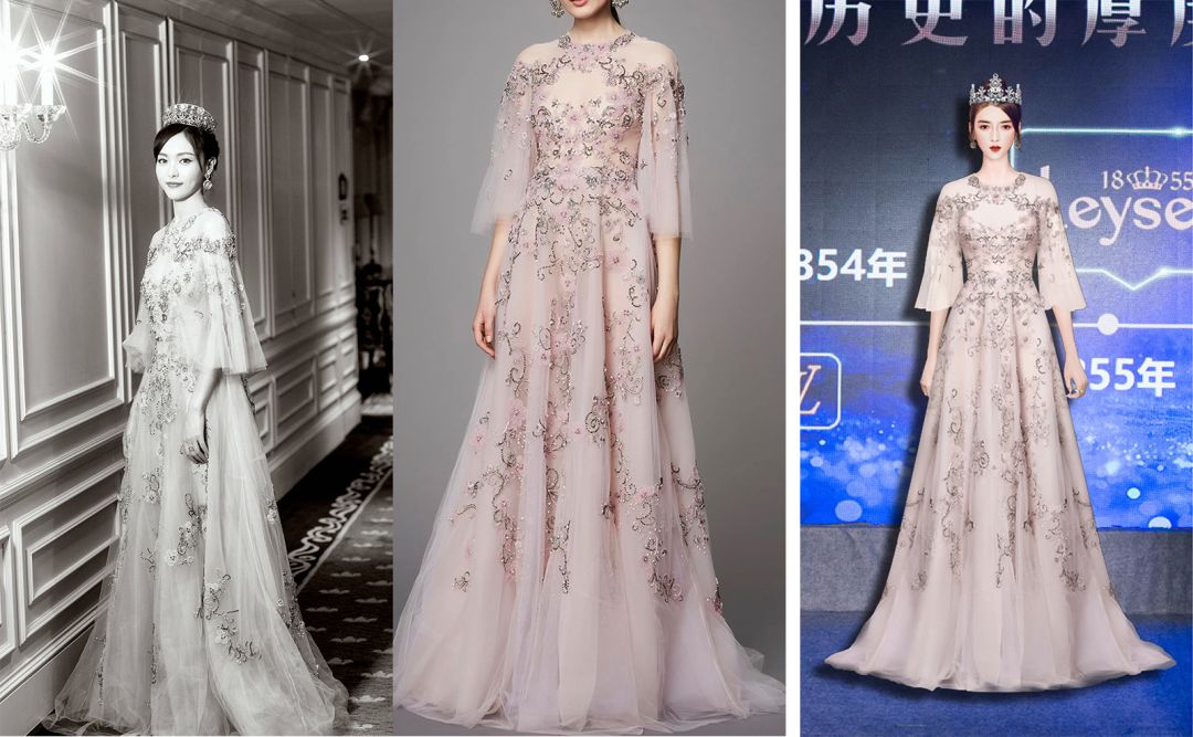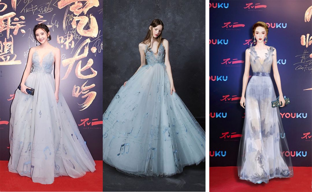 唐艺昕在今年也算是大火了一把,温暖阳光的笑容是她标志性的特征,像照进心底的阳光。而这条她在《大军师司马懿之虎啸龙吟》发布会穿着的DENISE深V轻纱透视礼服,像蓝天、像烟云,缭绕着她阳光的笑容中,将唐艺昕衬托的更加有魅力。