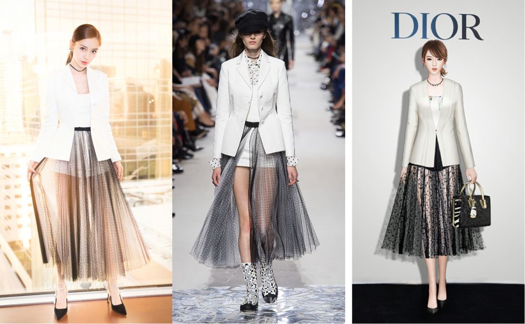 Angelababy以灰纱薄裙搭配白色西装套装,彰显独特现代女性特质,为摩登baby打call~