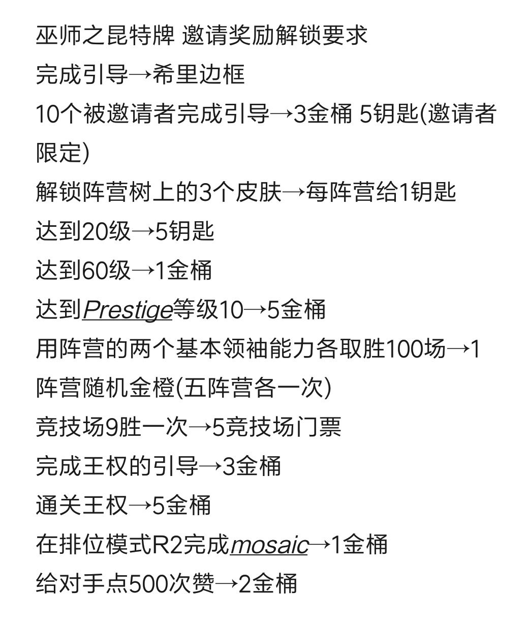 邀请奖励具体达成条件我大概整理好了: