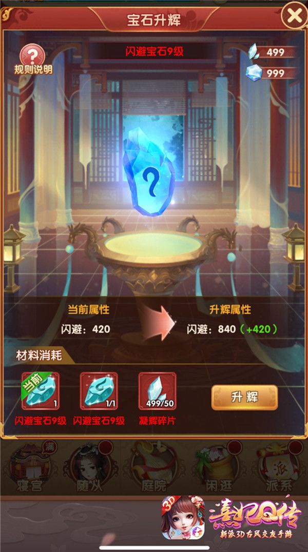 本次宝石系统也迎来了新升级,皇城巧匠苦研多年,终于悟得宝石进阶之法,九级宝石升辉开启!通过收集特殊材料对9级宝石进行升辉,就可以得到强力宝石—莹玉。装备在镶嵌莹玉后不但可以拥有强力的属性,多颗莹玉镶嵌还能触发同辉效果,更进一步提升装备属性,还有独家装备框外观,一睹莹玉同辉的光彩夺目!
