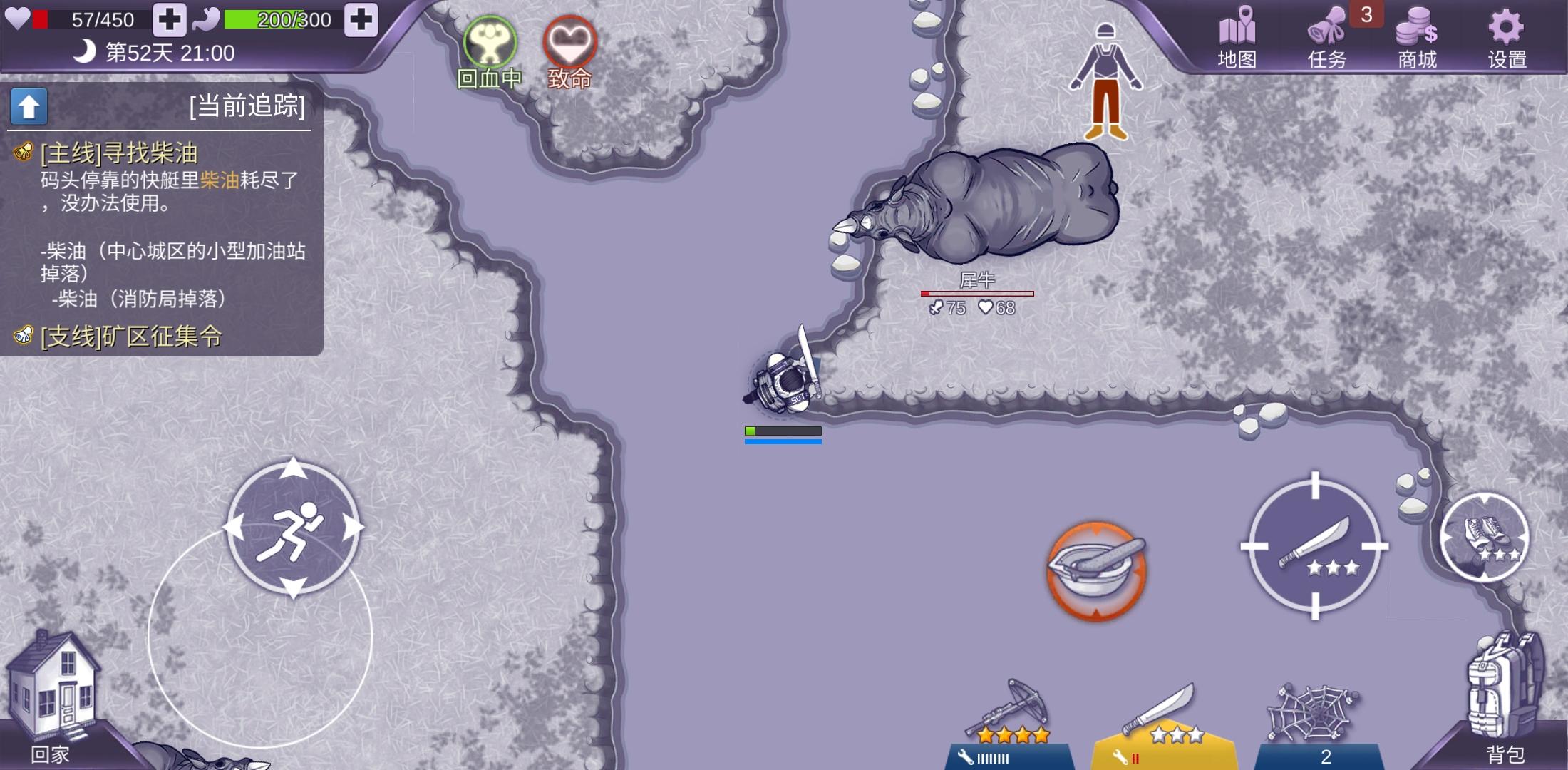如图,本来砍刀想硬钢犀牛,结果硬生生被顶进水里,一步也走不动了。最后没办法只有点传送回基地。