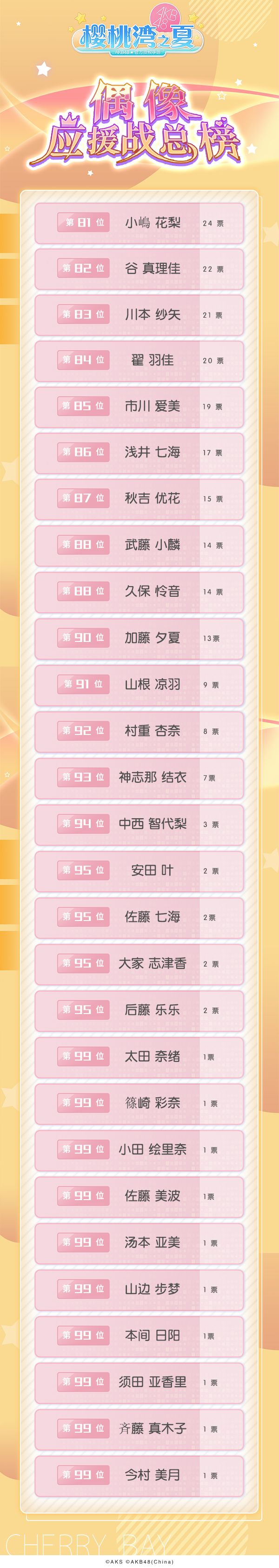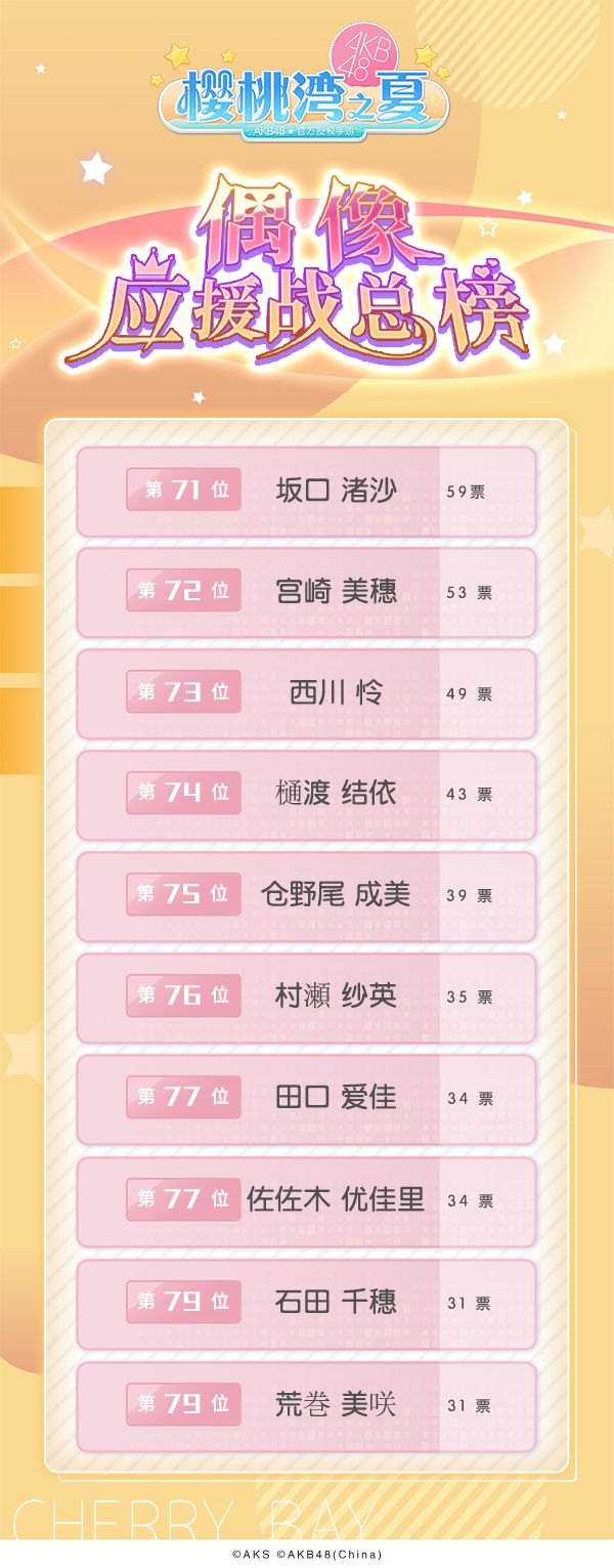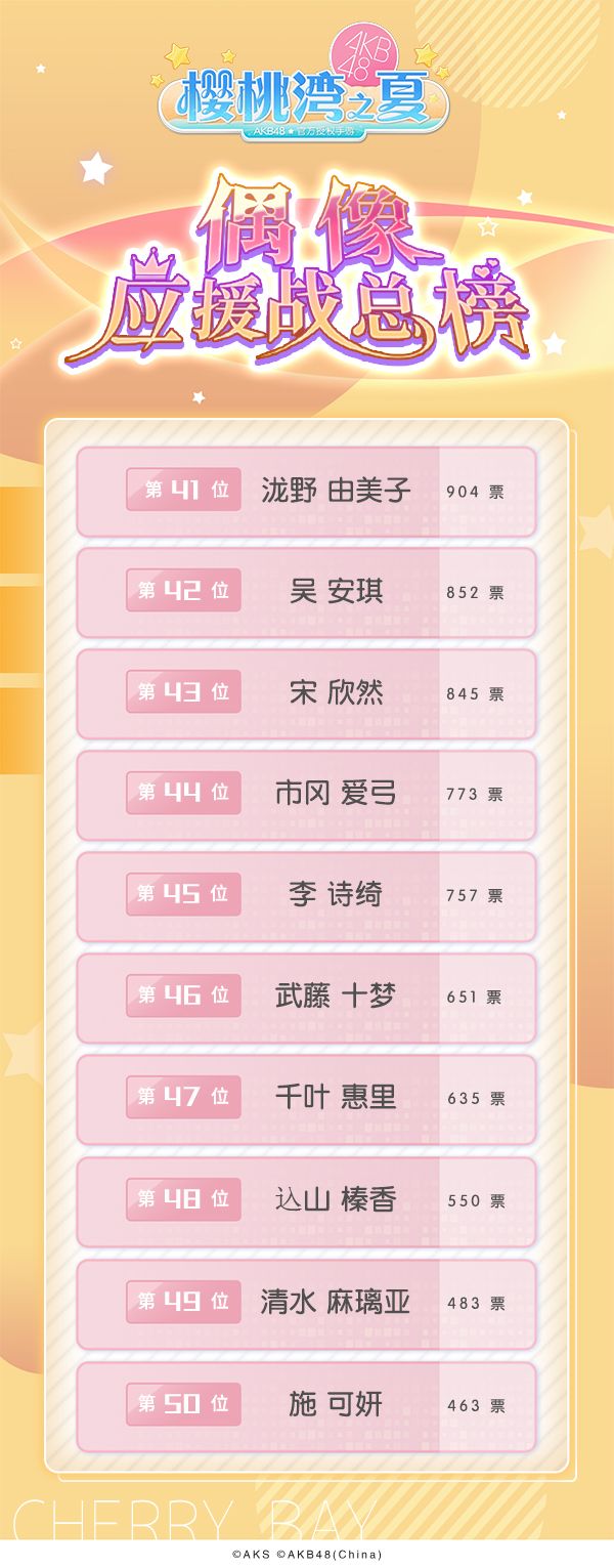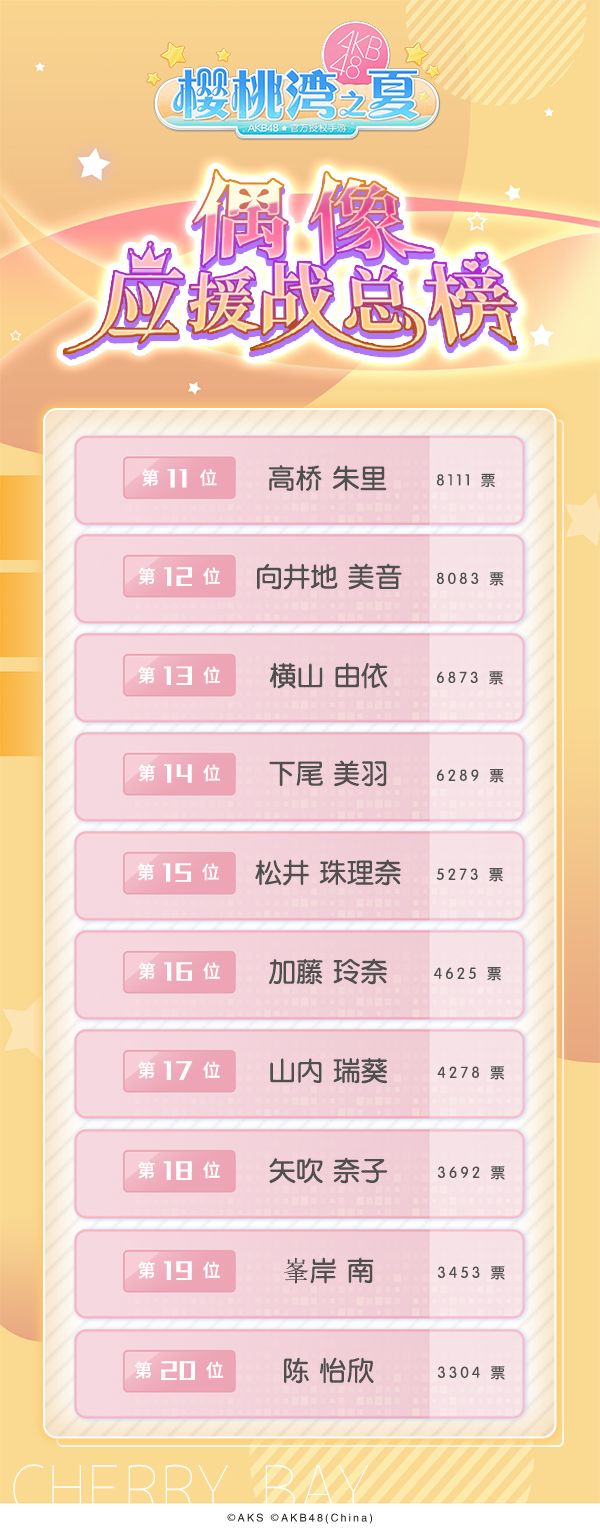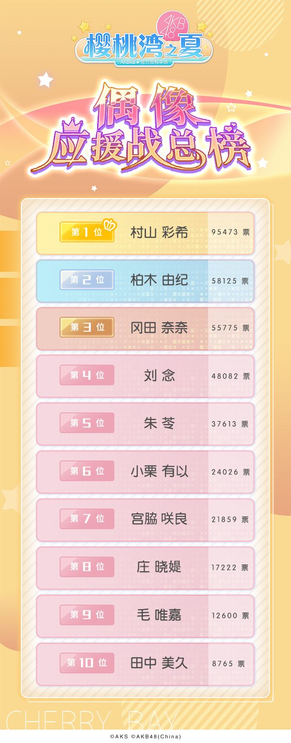 樱桃湾偶像应援战最新榜单新鲜出炉~