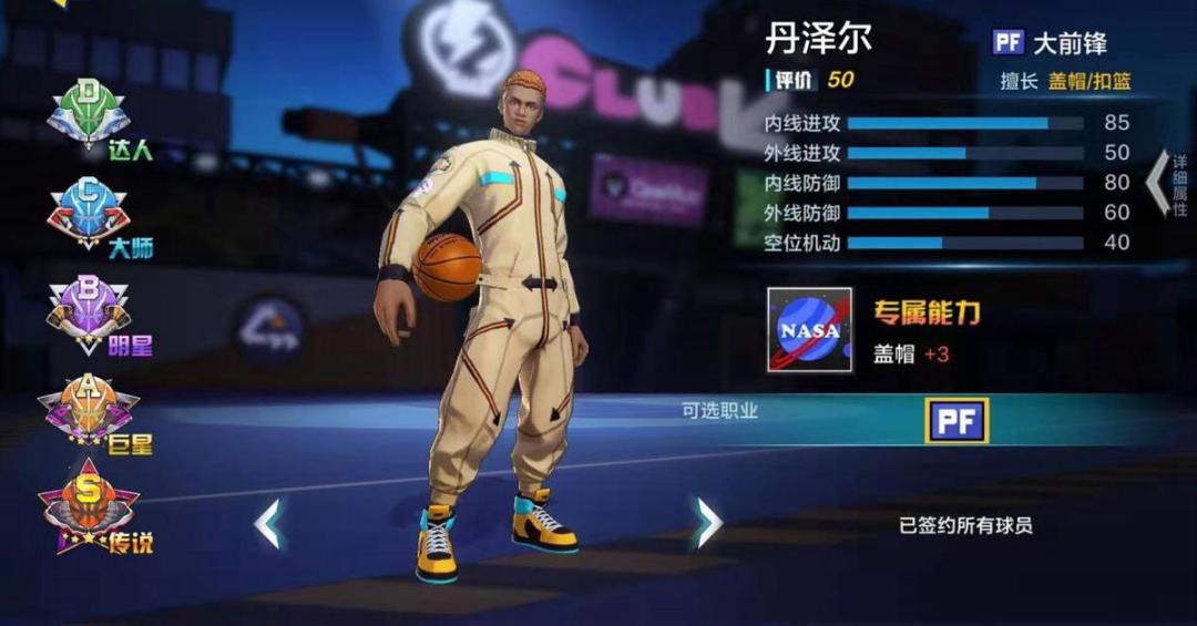 丹泽尔属性解读丹泽尔作为一名大前锋(PF位)擅长盖帽和篮板,专属能力是盖帽。