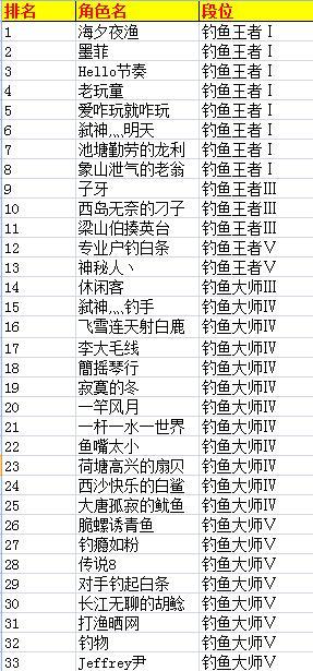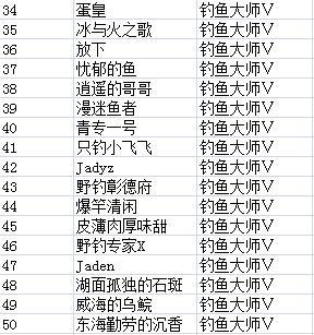 《钓鱼王者》--S4赛季实物奖励名单