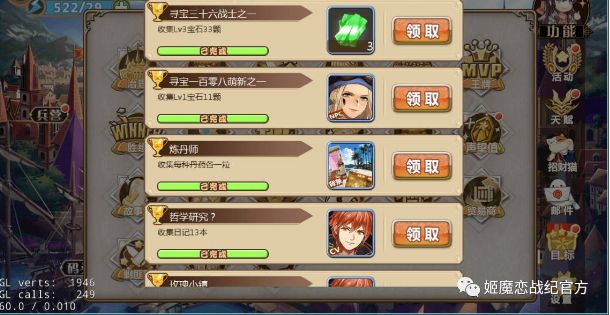 《姬魔恋战纪》目标系统可以在玩家达成某些指定目标给予奖励的系统。