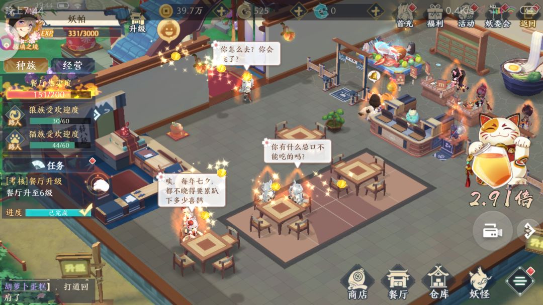 4.店面升级算快,3级以后关卡战斗能跳过,不耗费时间。