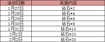 活动内容:春节活动期间,每日登录游戏即可在邮件中获得红包雨放出的钻石奖励,如果7天持续领取最多可获得140个钻石,春节福利大回馈千万别错过噢!