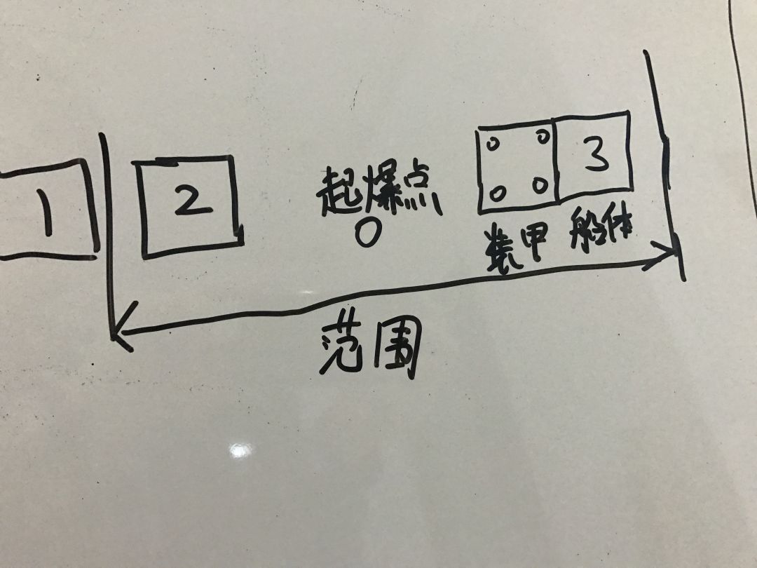 如下图中,1号船体因为在爆炸范围外,因此没有收到伤害。3号船体因为有装甲阻隔,因此没有收到伤害。而2号船体则很不幸,它会被爆炸损坏并失去浮力。