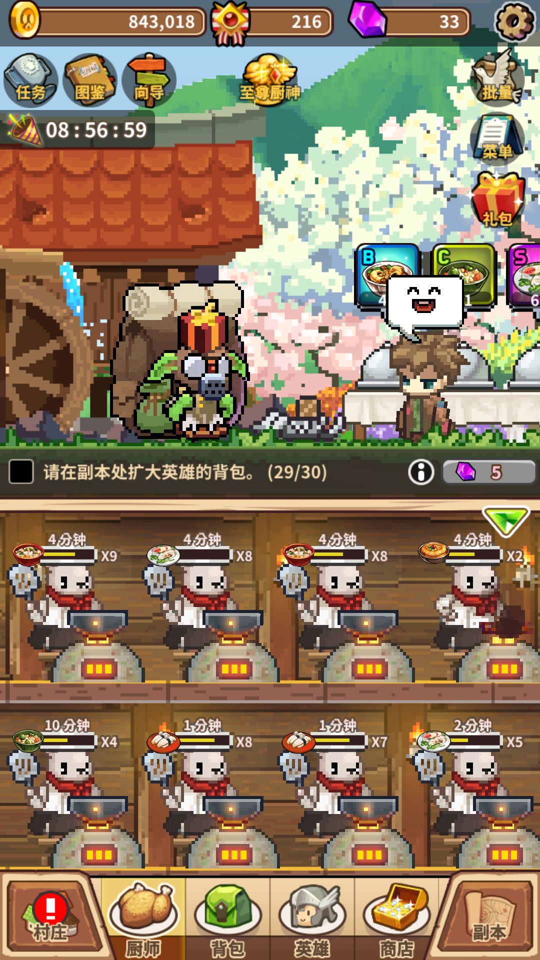 在副本处扩大英雄背包这个任务怎么都完成不了,八个队伍我都开满了,一直显示(29/30)