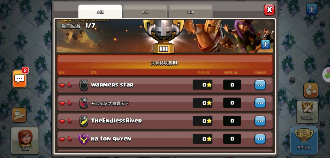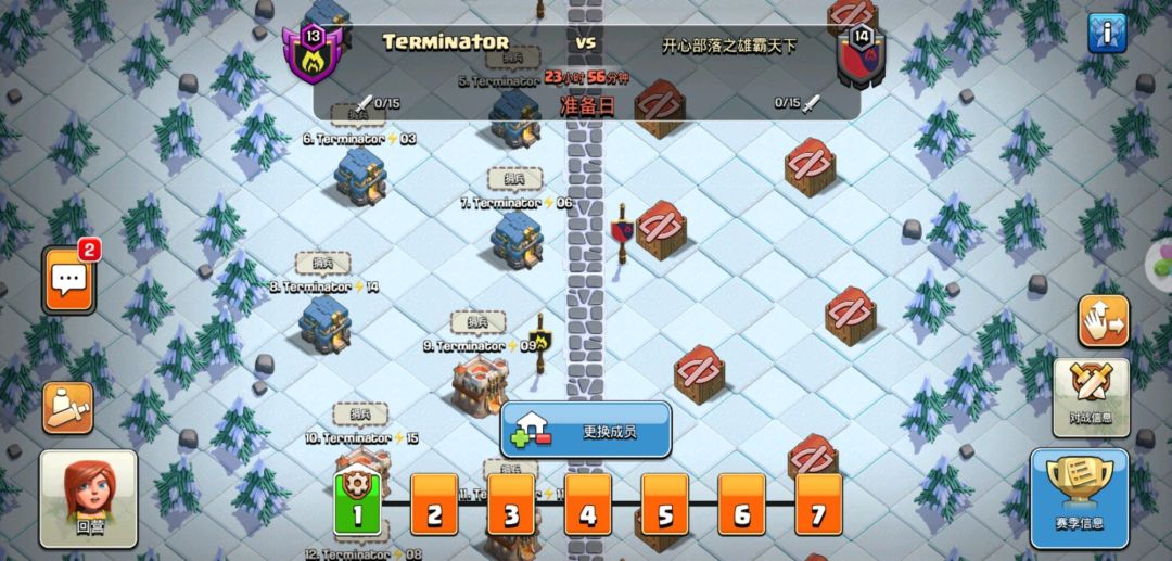 限时1天您可以更换对战的部落成员,查看对战信息等等