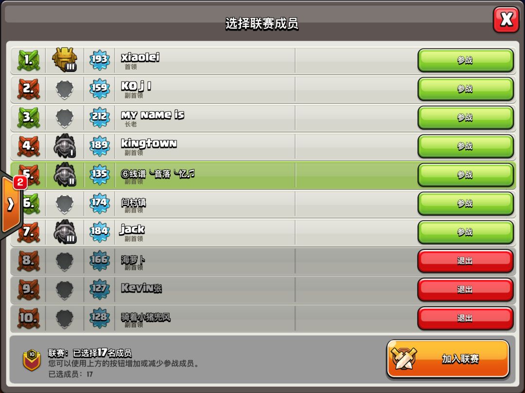 可选择25名部落成员。选择完毕后即可加入对战联赛。