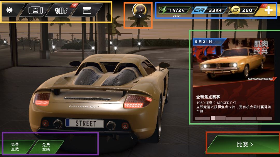 如果你已经准备好了,那么一起出发迈阿密的街头挑战其他车手吧!点击这里的“比赛”按钮,可以开启故事剧情和各种挑战!看看谁的车技和策略更胜一筹吧!胜利的一方,将会获得丰厚的奖励呢!我相信你一定是胜利的那个!到达8级后,将解锁全新的多人PVP模式,让自己在排行榜上占据一席之地吧!