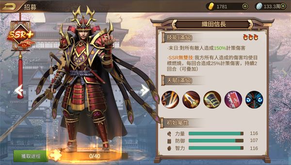 日本战国三英杰之一,有“第六天魔王”之称的织田信长,一生致力于结束乱世,重塑封建秩序,他有一统全国的野心,有征服一切的欲望,而在《联盟冲突》中,我们的大魔王织田信长作为超级SSR的英雄,更是助你一统江山的得力干将,在这里,“信长的野望”不再是梦想!
