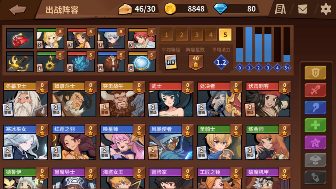 卡牌及卡组编辑界面现在可以直观的看到各个英雄和装备的等级和星数以及阵容的总星数、平均等级、平均卡片的法力消耗↓