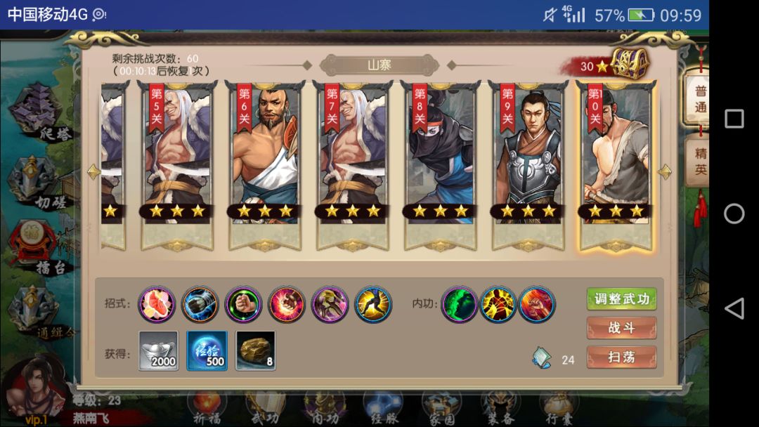桃花村的土匪头子想必很多人都倒在这上面了,对新手这个BOSS真的是有点不友好,我也是打了好几次调了好几次武功内功才过去的。