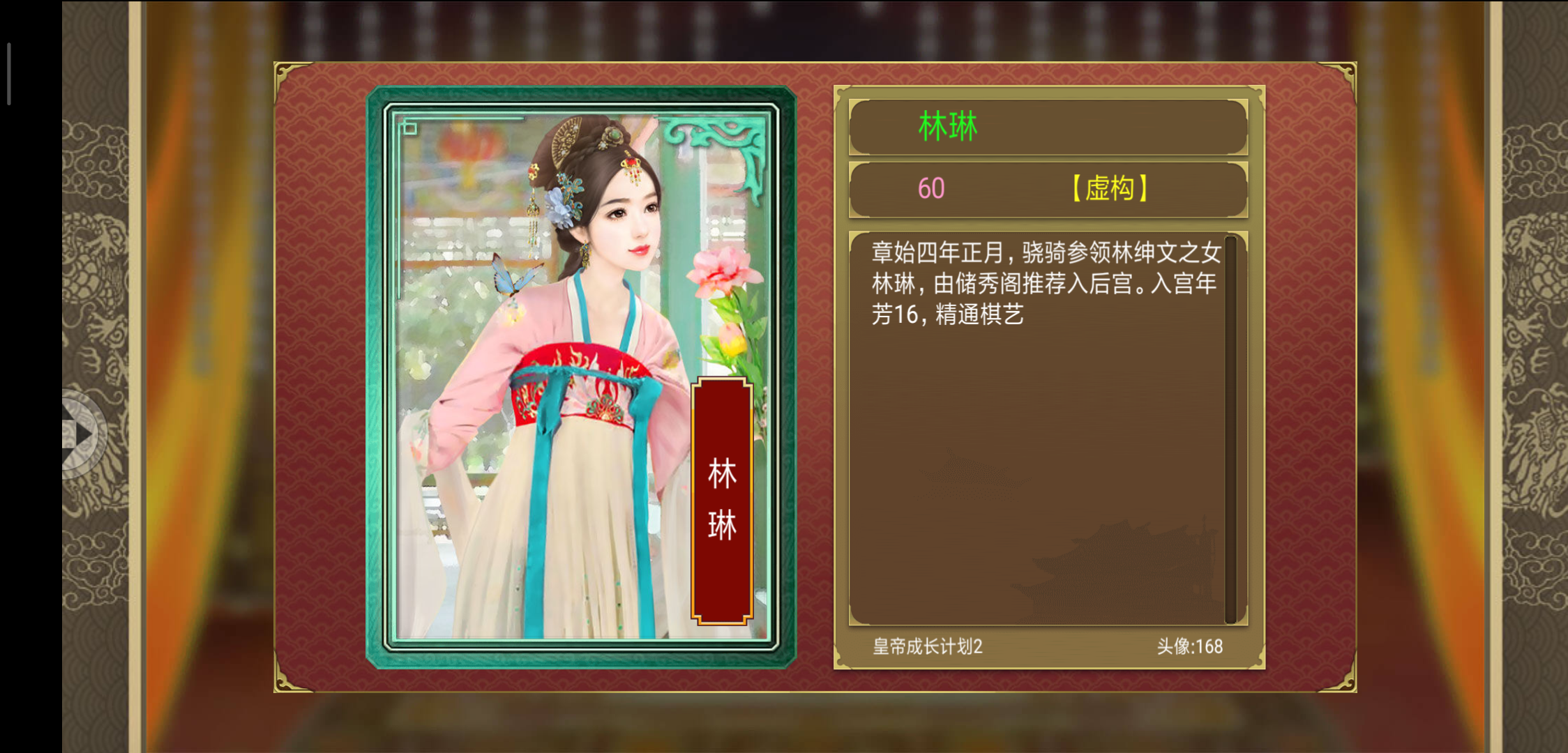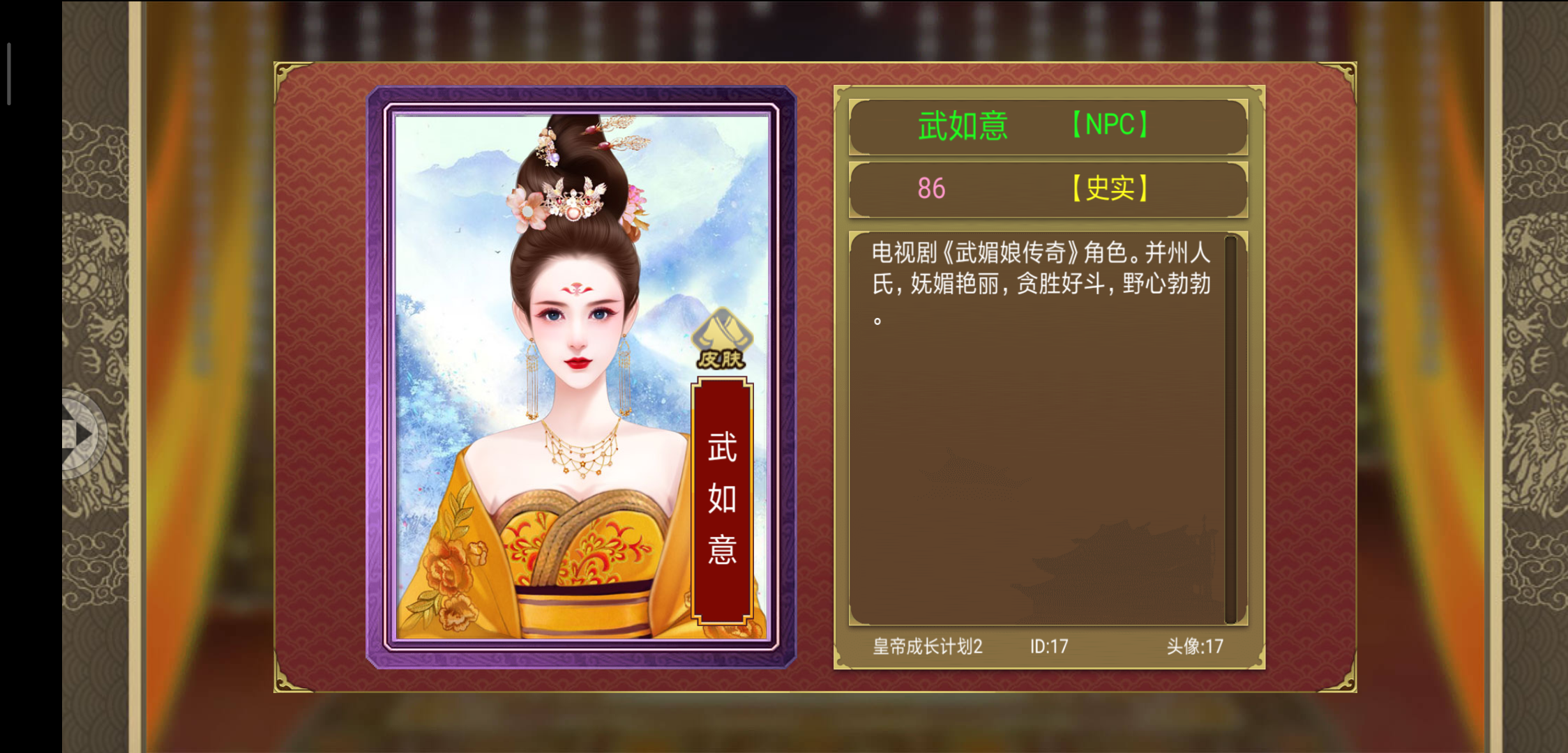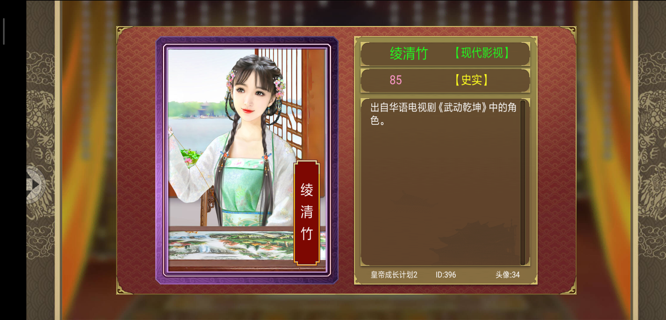 这个是我最喜欢的,最让我惊艳,第一次看到她就把她升皇后,第二次看到的时候也想升皇后,不过没刷到五百我就结局了。