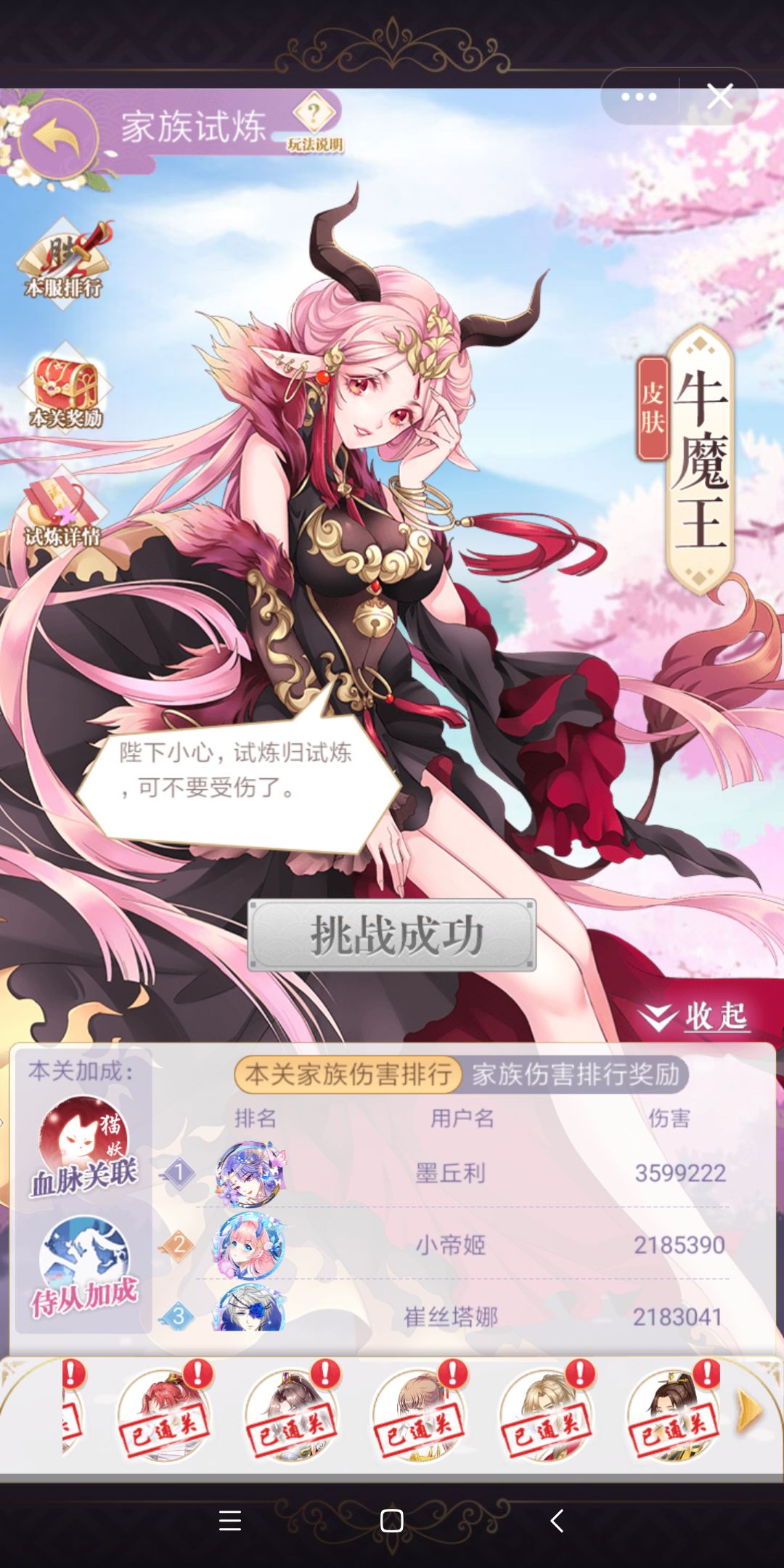 1.家族试炼试炼关卡奖励和家族试炼伤害排行榜奖励可以一健领取,一个星期可以打很多关卡我个人喜欢可以一次领完所有关卡奖励。