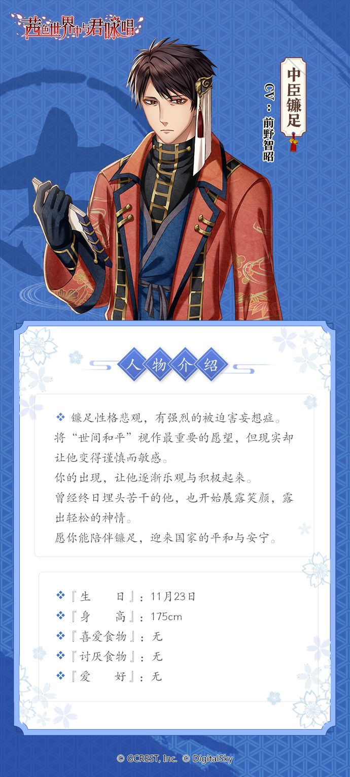 中臣镰足性格悲观,有强烈的被害妄想症,同时是个勤勤恳恳工作、武艺高强的人。