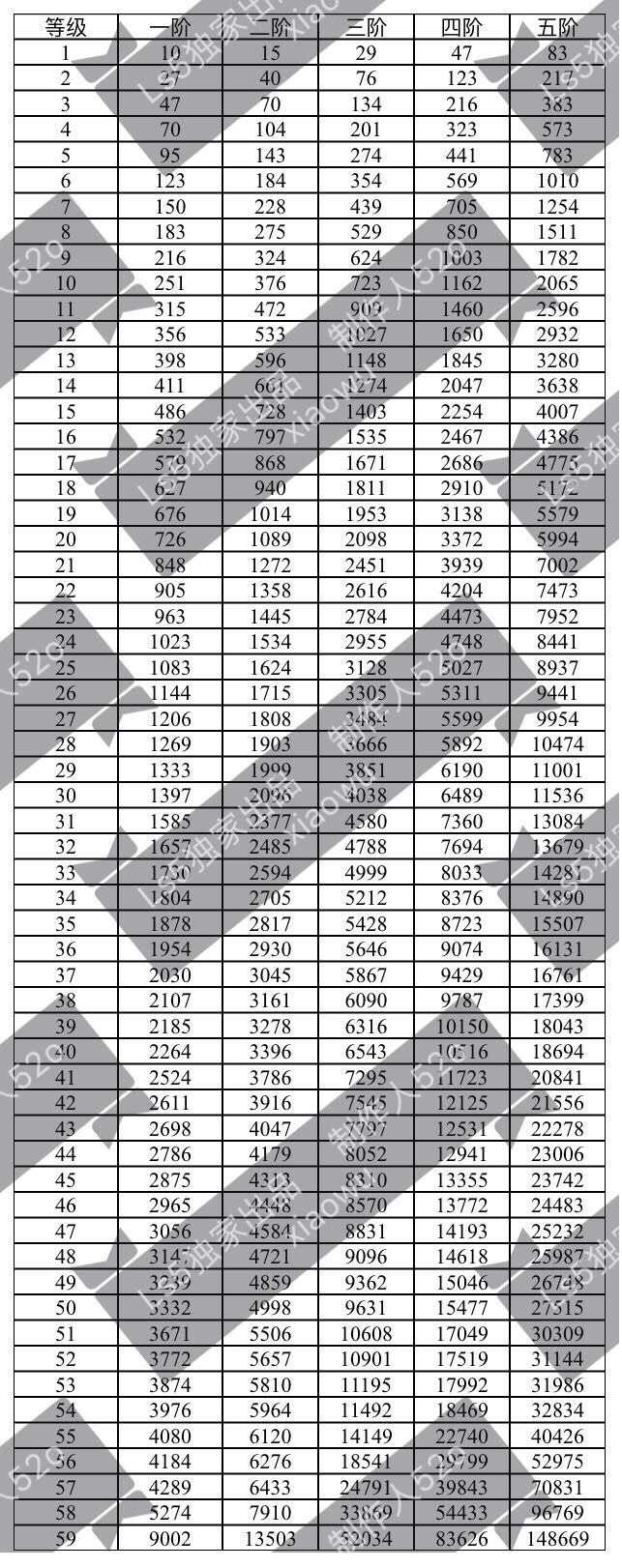 则根据图表所示,5阶魔物,从1级升至2级需要83的经验值。