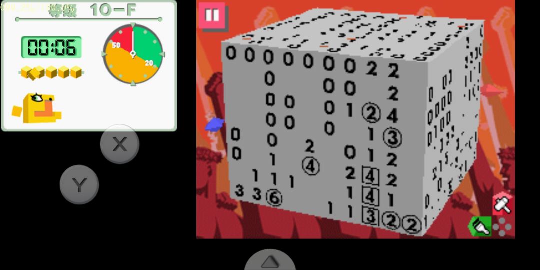 这个是立体版本,规则跟平面的有所不同,但非常有意思,唯一不好的地方大概是用手机玩比较累,因为不能像2代一键去0,每次敲模块都比较累,而且手指比较粗,不能像触控笔那样精细操作,容易误敲。立体绘图方块2在3DS平台,暂时没有手机模拟器。