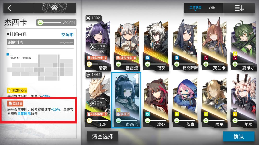 (1) 首先需要注意的是干员必须在有心情值的条件下,才能进行线索的搜集,记得及时更换疲劳干员。