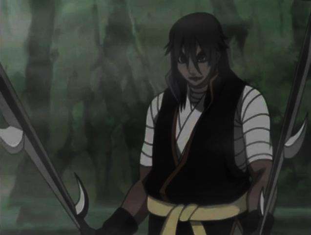 后来与木叶村的宁次、李、天天、鸣人四人组交手,当知道兰丸为了救鸣人而放弃生命时,几乎都要疯了,以至于用雷电之力一举消灭鸣人一伙儿,最终被鸣人击下悬崖而死,在空中举办了自己的葬礼。