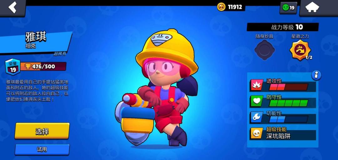 我们观察属性分布发现,雅琪的防守性是5格,进攻性和功能性是2格
