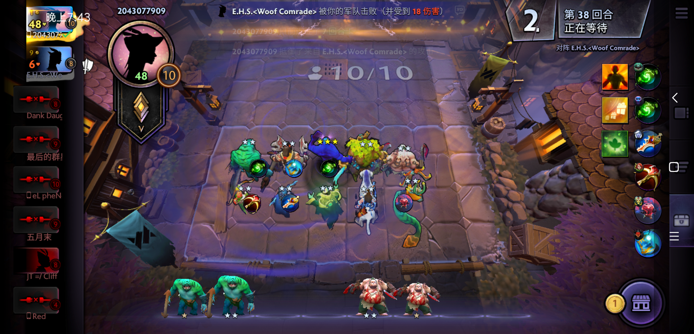 差一个3星潮汐难受,第一次拿5星装备那个小黑装的神剑加330攻击输了装备给对面,还有一个5星的是每轮第一次的棋子免费都挺强。
