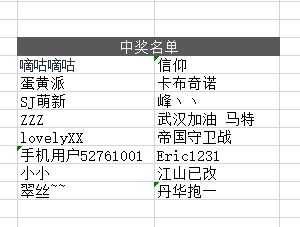 公布一下本期中奖名单: