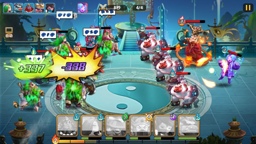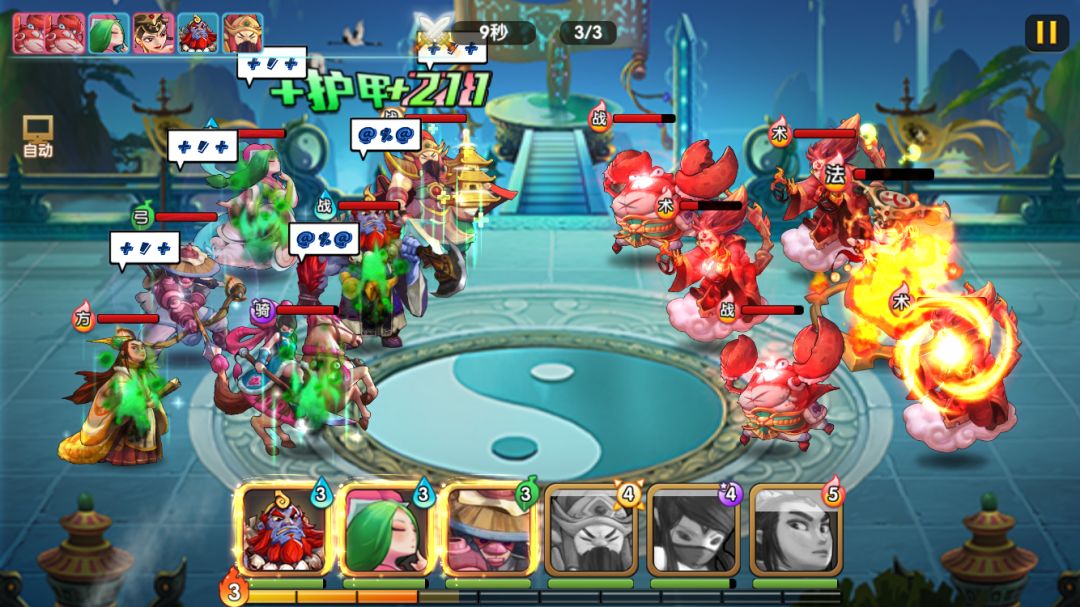由于boss会禁疗和毒,一旦命中都是凶多吉少,所以依然需要速战速决,开局云中子二连大赌脸。而小怪虽然奶量不低,但因为可以给云中子或李靖封禁,这关只要云中子二连秒boss,后续压力不大。