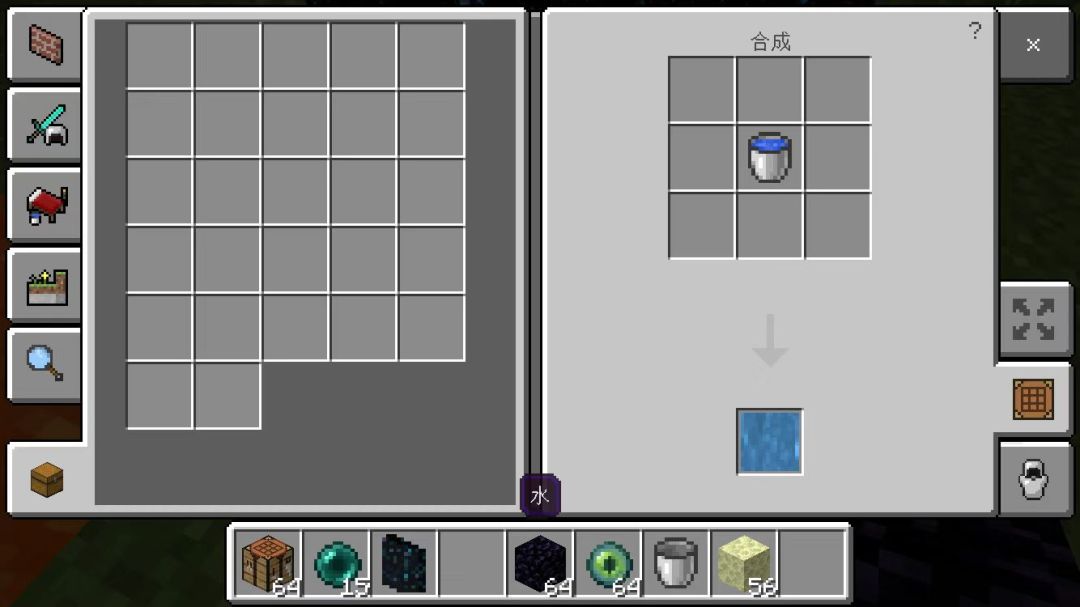 直接把水桶或岩浆桶放进工作台可以得到桶里的水或岩浆方块,放在地上它们不会流动,但是如果周围的方块有更新比如方块破坏移动的话,它们就会开始流动~
