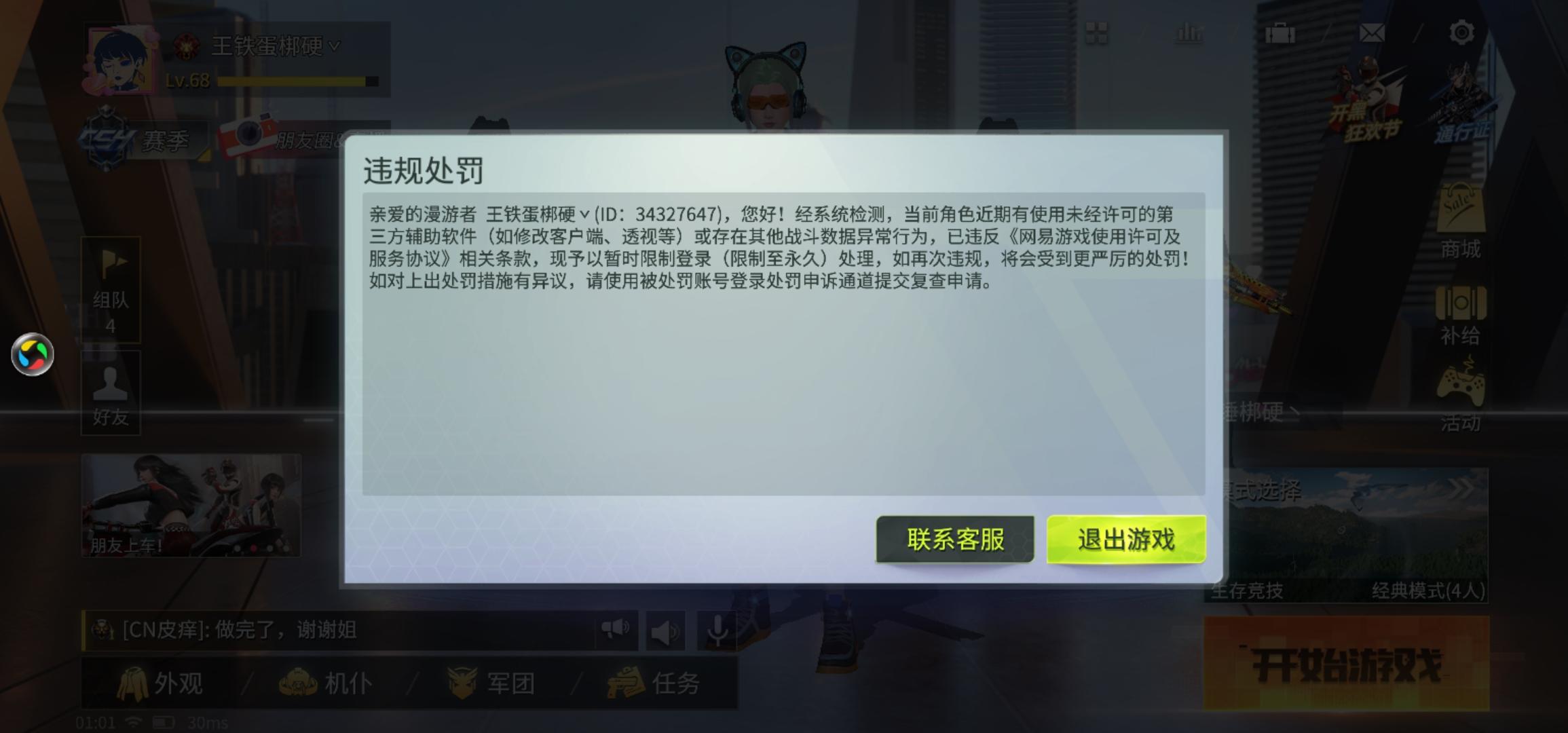 我是一名量子特工玩家,量子特工每个赛季我都玩过,第三个赛季我才正式入坑,现在第四个赛季了,而我前天被官方封号了,我首先声明我没有开挂,我只不过是卡了一个bug,这个bug还是基本人人都会的上房顶的bug,然后下一把直接给我封号了,我在游戏内反馈却不给我答案。