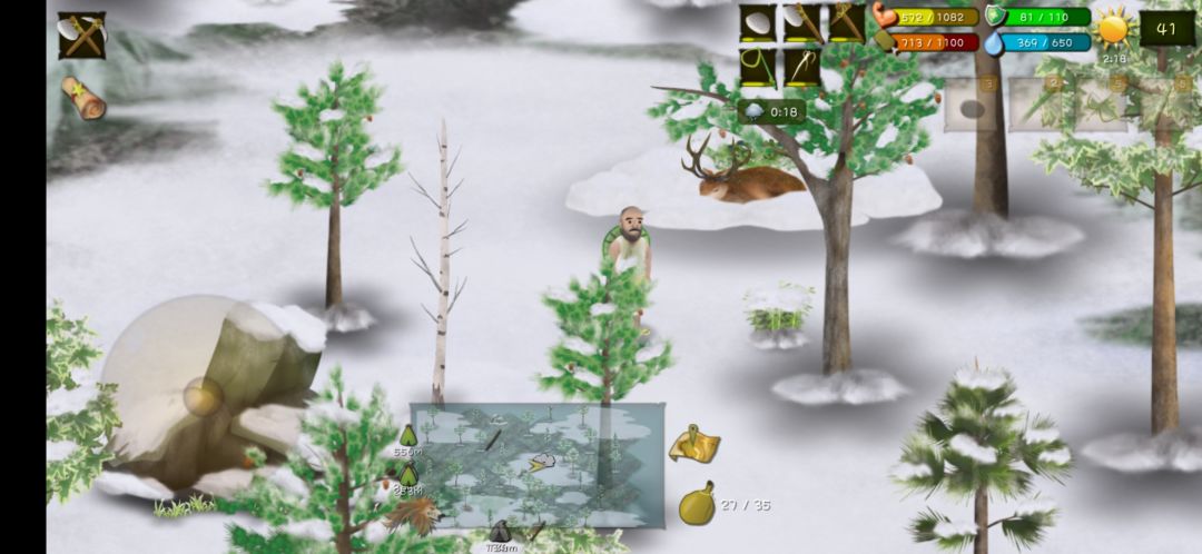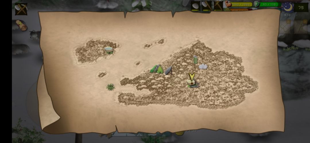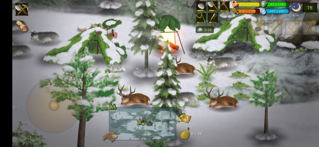 之前我雪地陷阱都是放在营地左边位置 三十天别说鹿了 狐狸都没有来一只 三十三天左右陷阱坏掉了 我刚好在现在陷阱那个位置(地图上白色那一块) 看到了很多大雪块 就把陷阱放置在那里 二十天内连来两只🦌 🦊也来了 六十多天陷阱坏掉了之后 我又在原位置附近做了一个 差不多十天又抓到🦌