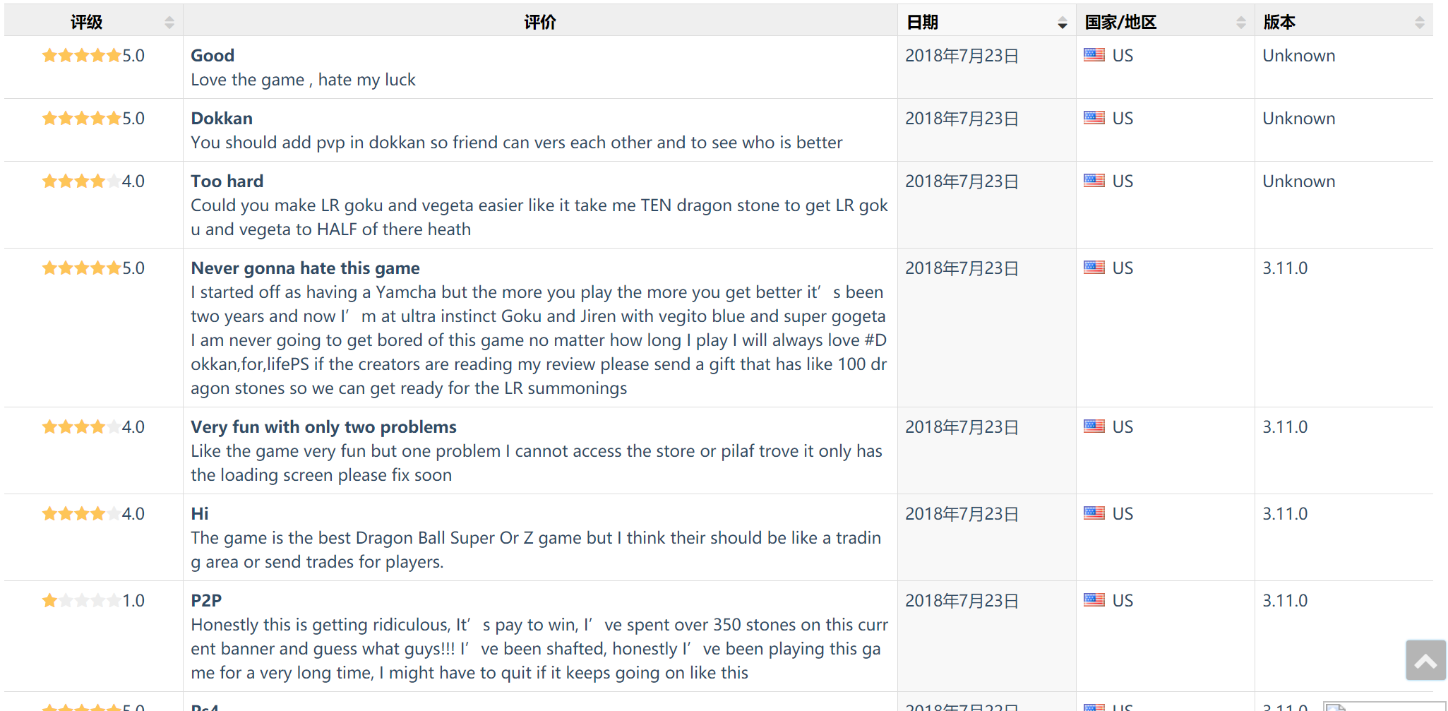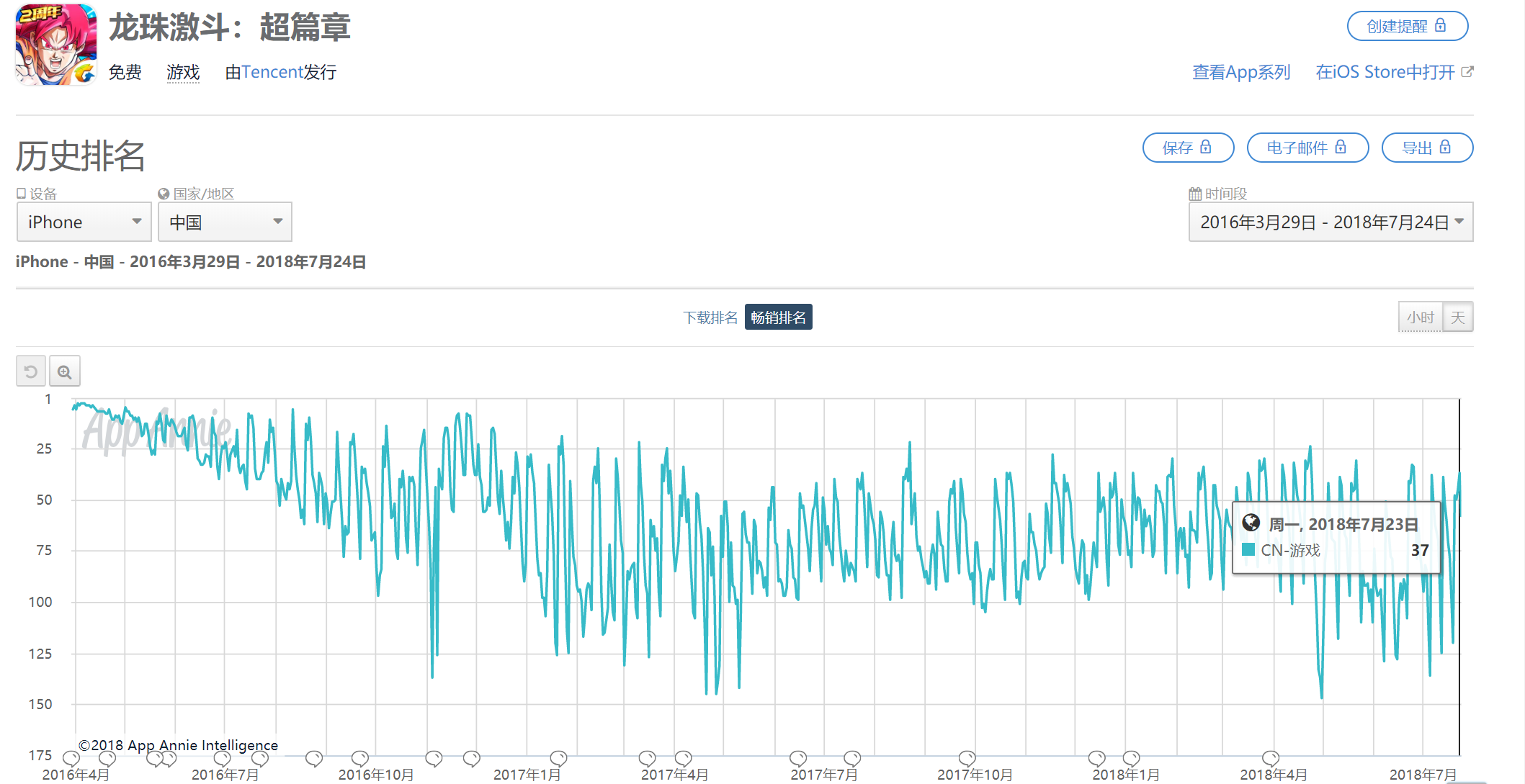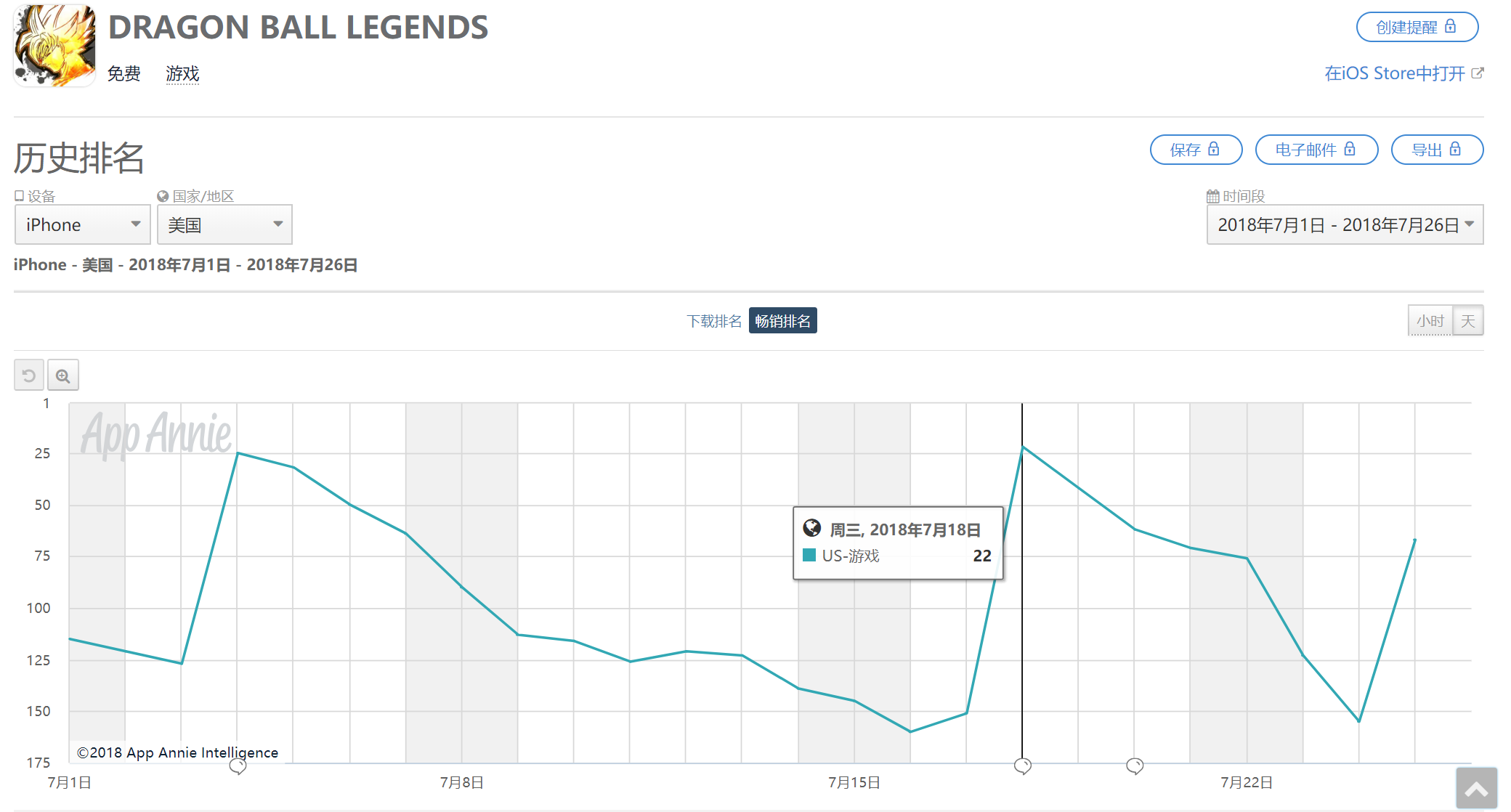 另一款手游《龙珠:传说》(Dragon Ball Legends),也分别在7月4日和18日的版本更新后,重新回到畅销榜Top 30。