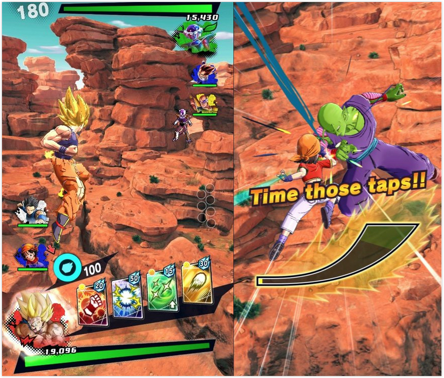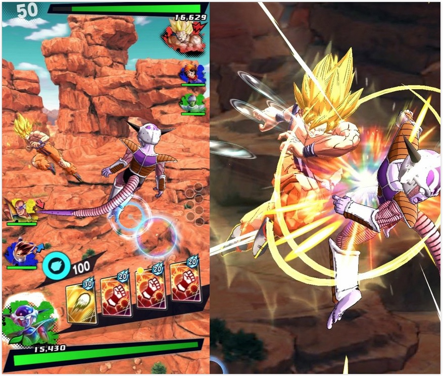 《爆裂激战》是比较早期的卡牌形态,所以还原主要还是靠角色绘制来体现,另外就是一些类似“觉醒”的卡牌升级设定和角色特点的适配(比如赛亚人变身)。不过受当时主流玩法设计所限,这种还原还是有限。