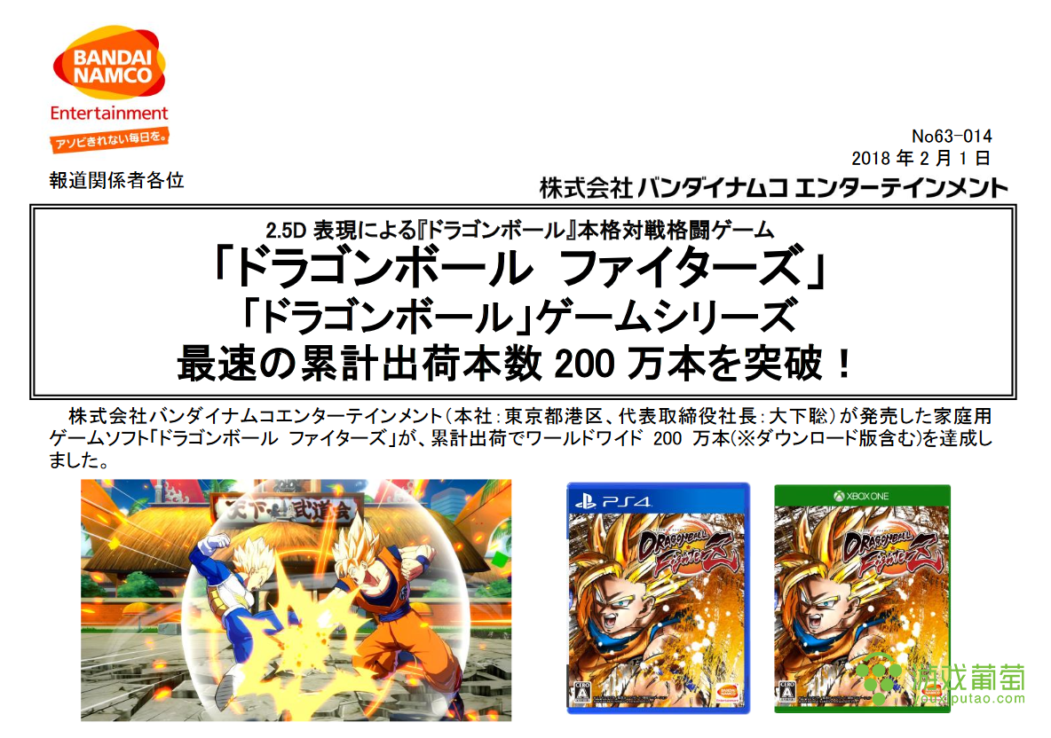除了移动平台,主机平台的改编游戏在今年也有抢眼的表现,《龙珠斗士Z》(Dragon Ball Fight Z)就突破了格斗这一小众品类的界限,上线7天销量就超过了200万。