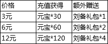 累计充值3000元宝,可获得:马超礼包*10,符石-游龙*3