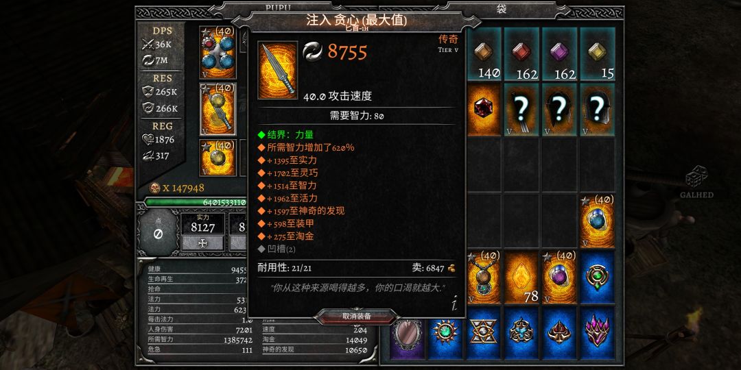 打工套基本上都是法师装备,其中这是效用最大的两个部位的装备。贪心是加mf最高的装备。淘金戒子是二者和加的最多的装备。前期出了这个没钱强化可以先融合,并用附魔加淘金和mf,后期必须强化40,不然刷起来没效率。项链是贪心融加速项链,要刷先跑的快![[嗒啦啦2_吃瓜]](https://img.tapimg.com/market/images/6eb1d083dff1c09692102cb5a98727f3.gif)